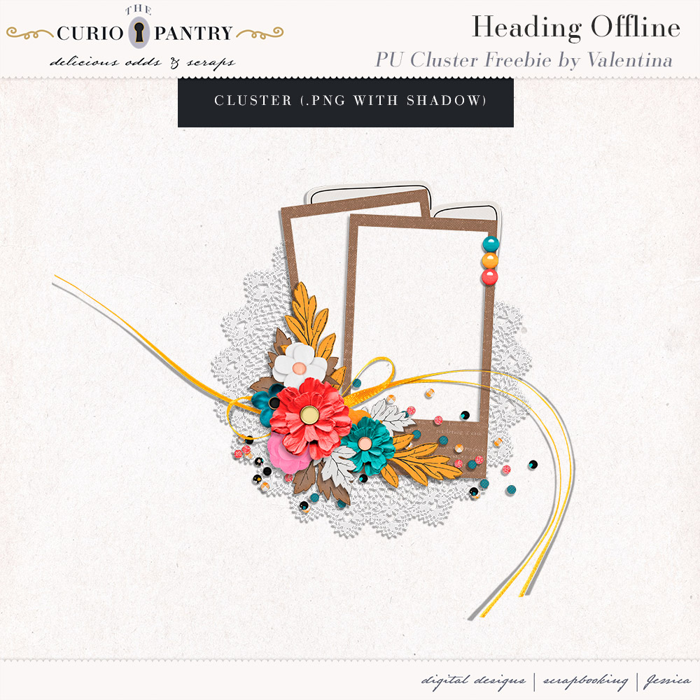 You can head back here the forum to pick up where you left off! But before you go be sure to pick up these gorgeous clusters which were made by Creative Team ladies, AMarie, Valentina, & Poki! They put them together using the bundle Heading Offline and are generously sharing them with us!