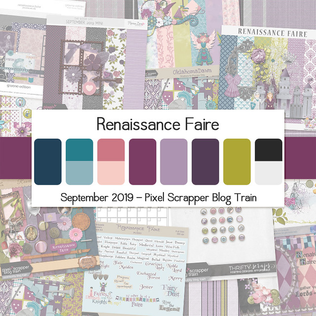 I’ve never been to one, but if Renaissance Faire’s are up your alley, then you are going to love this train! The colors were a bit challenging for me so I had some trouble getting the inspiration to flow, but I was still able to come up with a mini kit to offer you all! Hope you like it!