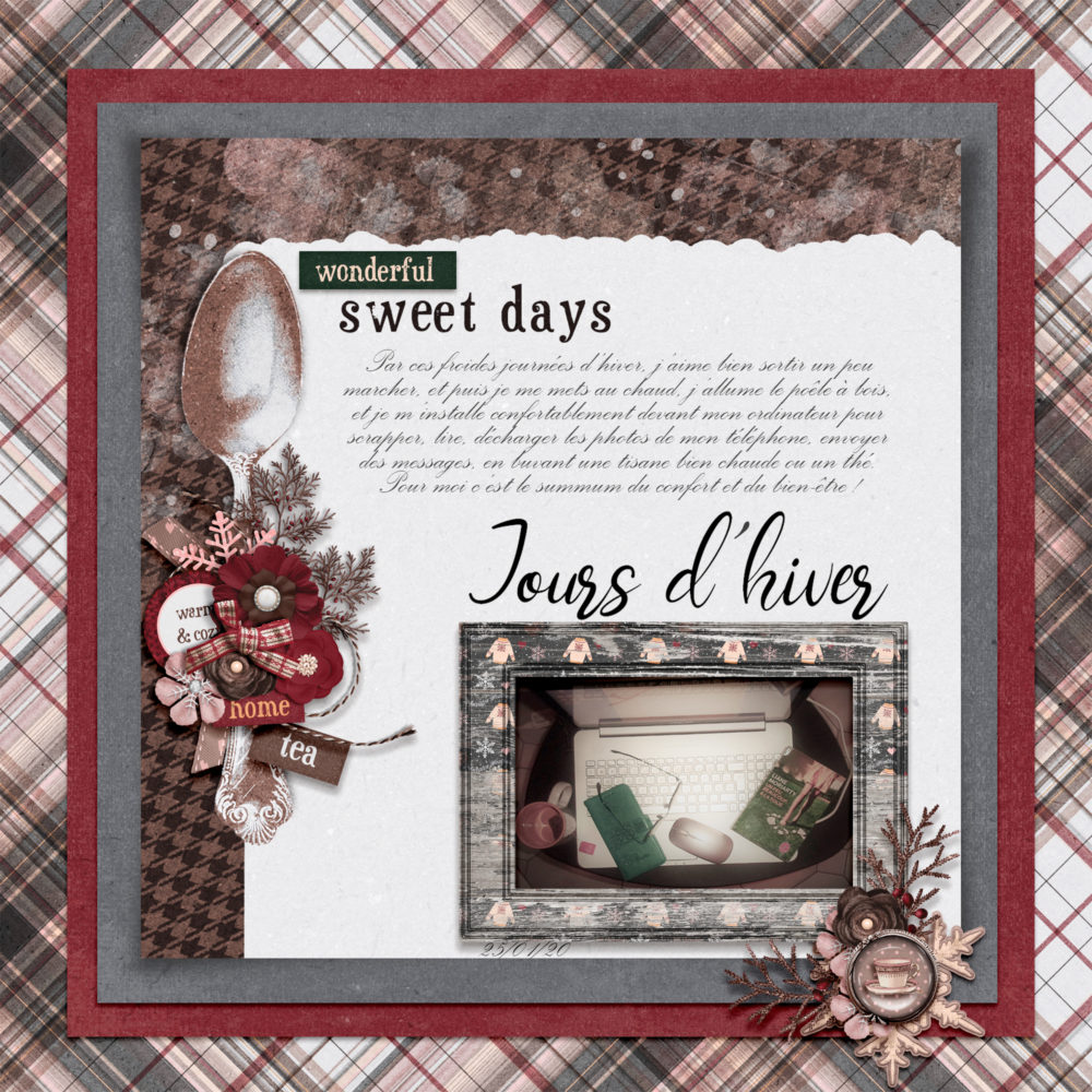 However, I’ve been busy, despite the warmer weather with a new bundle Sweaters & Hot Cocoa. I’ve added it to the January Good Life collab at Pixel Scrapper.