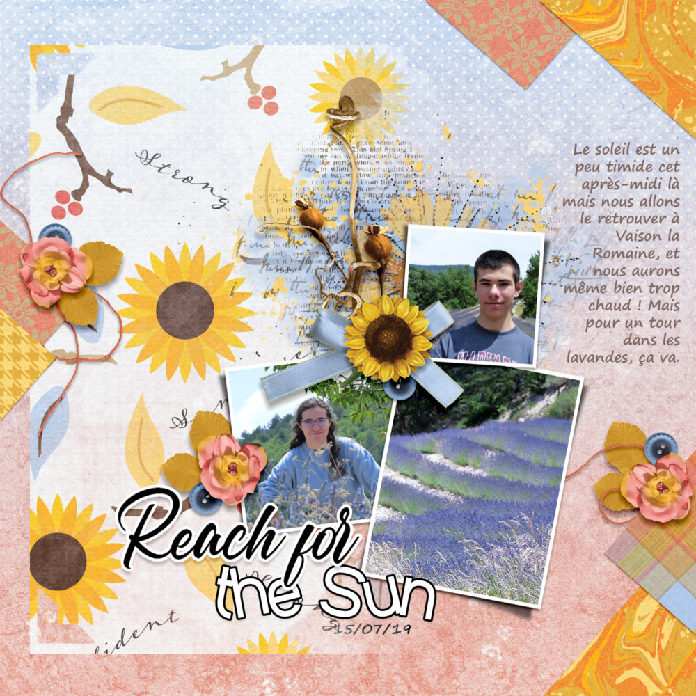 Sunflowers are bright, bold, and beautiful so why not use them for an uplifting layout or project! This was originally part of the Studio’s FWP Reach for the Sun Collab. Now it is only available on Pixel Scrapper.