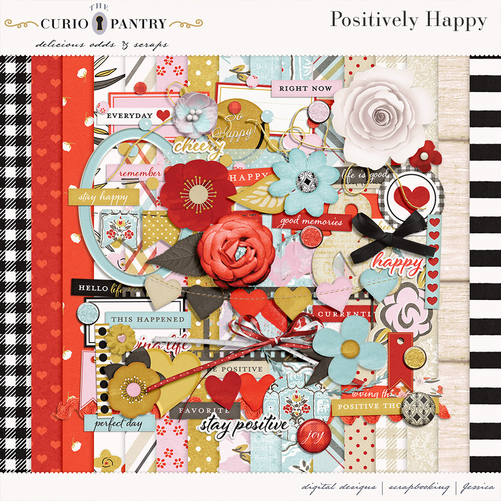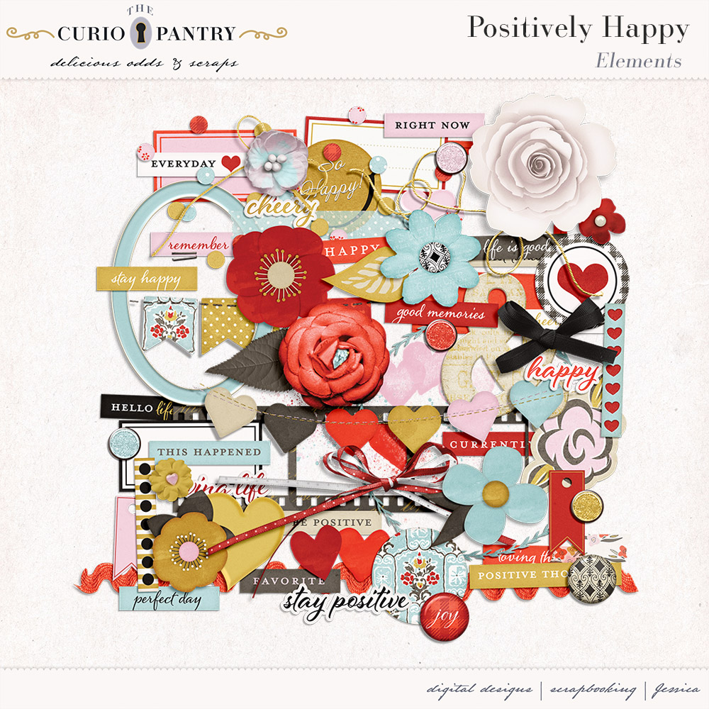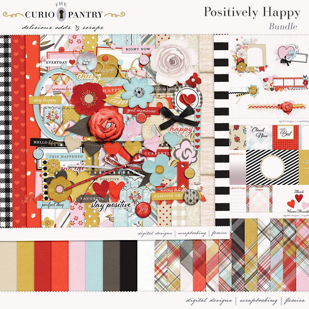 A brand new bundle at Pixel Scrapper called Positively Happy! Sometimes you need a little positive thinking in your life to help boost your mood and feel a little happier. Well that’s just what this Collection Positively Happy intends to do! With it’s bright and cheerful colors this is sure to give your pages a happy presence. 🙂 Just creating this kit helped me feel a little more positive!