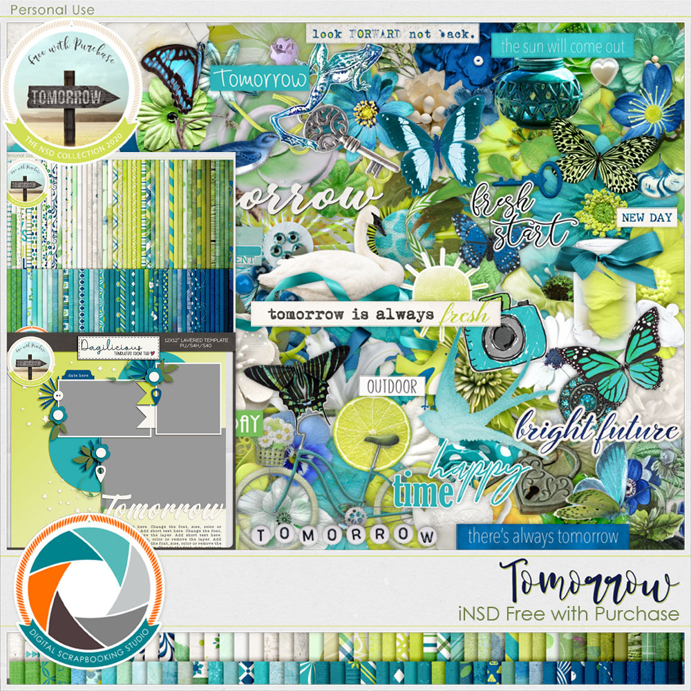Available iNSD weekend only you can get this Free With Purchase collab : Tomorrow, which coordinates with the blog hop if you purchase $20 or more from the Studio! So if you were already planning to stock your stash with iNSD sales then this beautiful bundle is what you can get for free. Just be sure to add it to your cart! The FWP alone contains 95 papers, 299 elements and 1 template in TIF, PSD & PNG files!