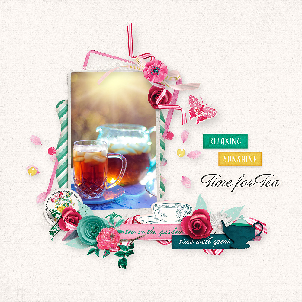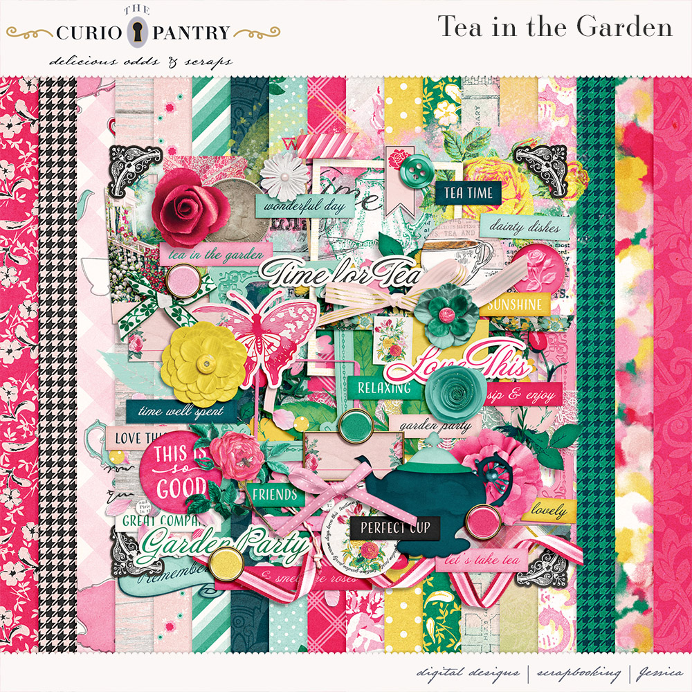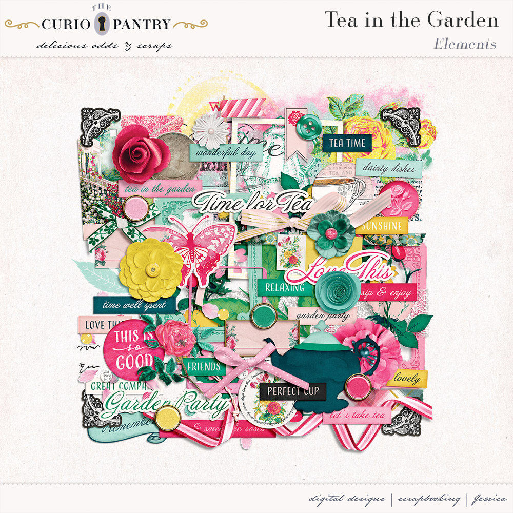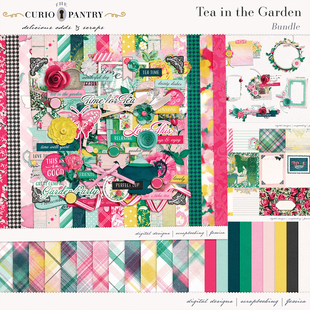 Tea time! This new Bundle, Tea in the Garden, is a sweet mix of sunshine, tea and roses which is sure to please! Whether you are documenting a garden party or just sitting down for tea this bundle is the perfect touch to polish your projects.