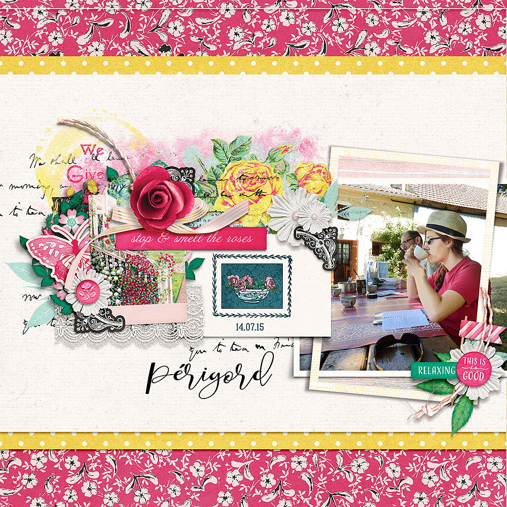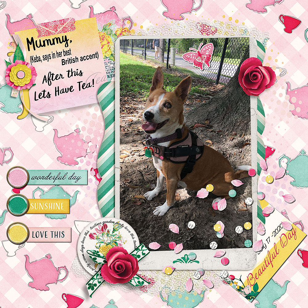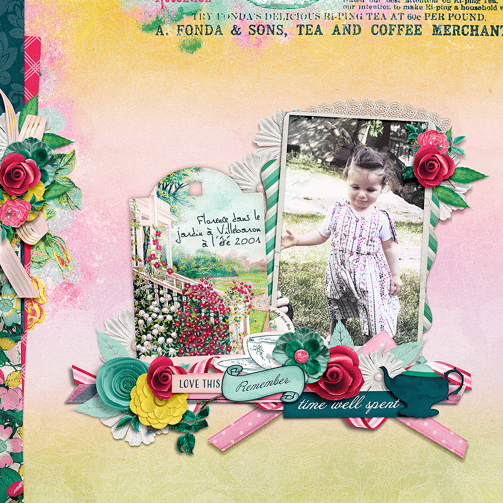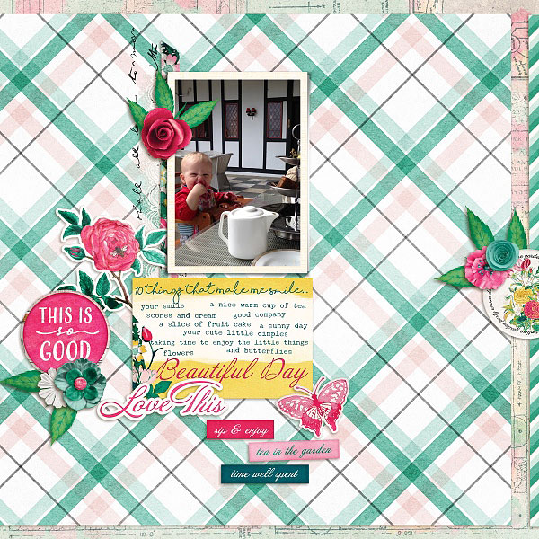 Tea time! This new Bundle, Tea in the Garden, is a sweet mix of sunshine, tea and roses which is sure to please! Whether you are documenting a garden party or just sitting down for tea this bundle is the perfect touch to polish your projects.