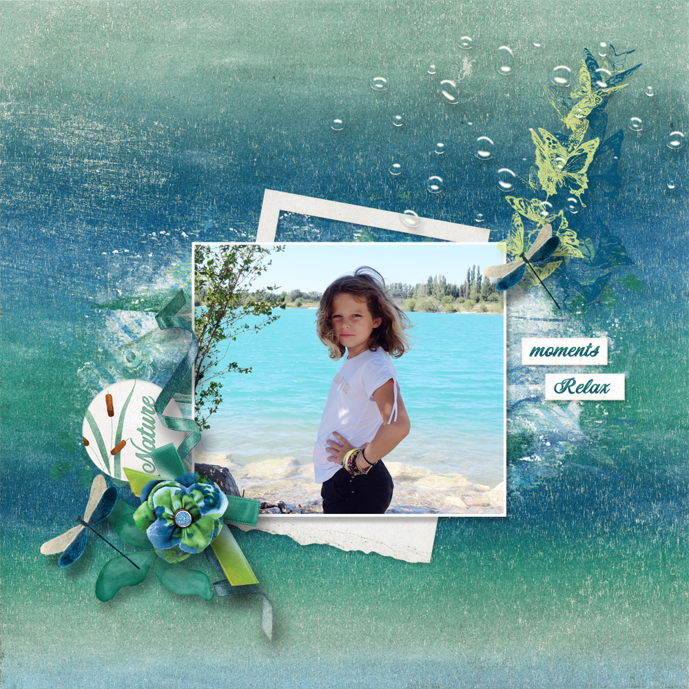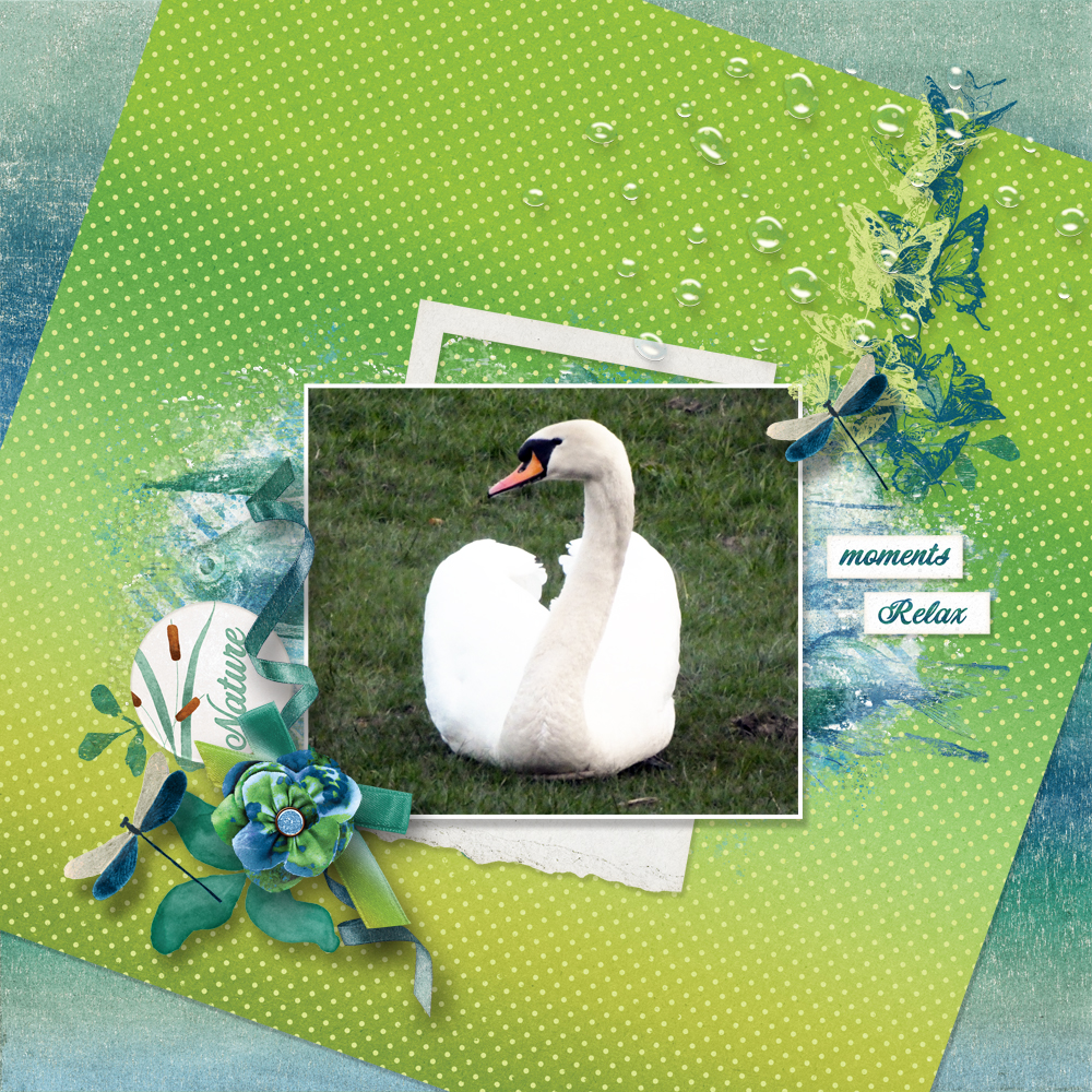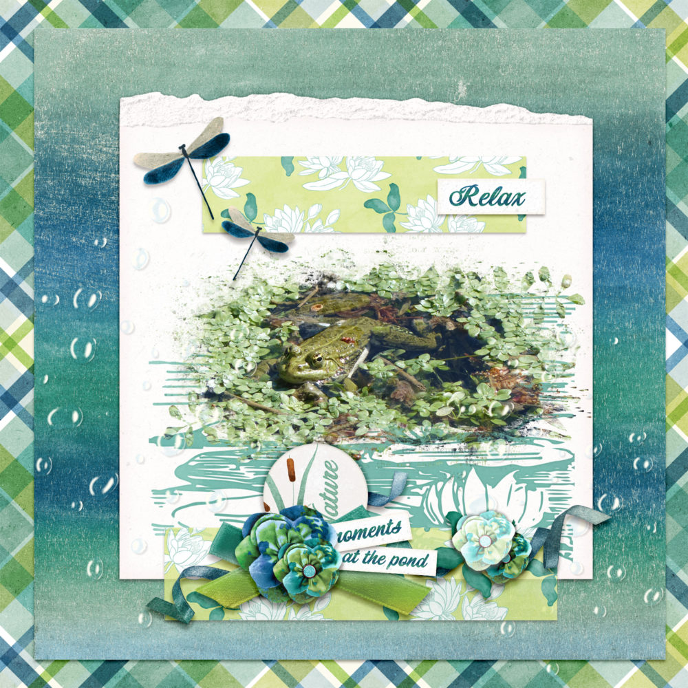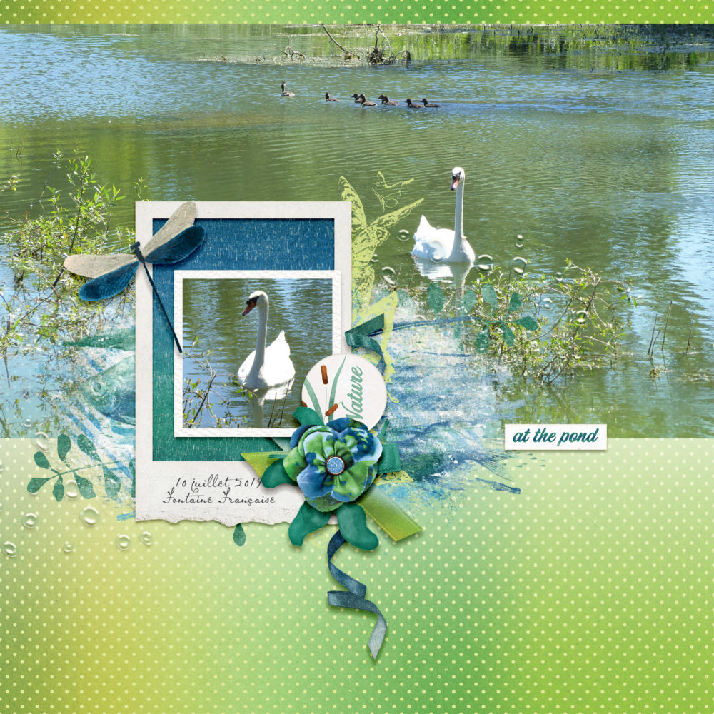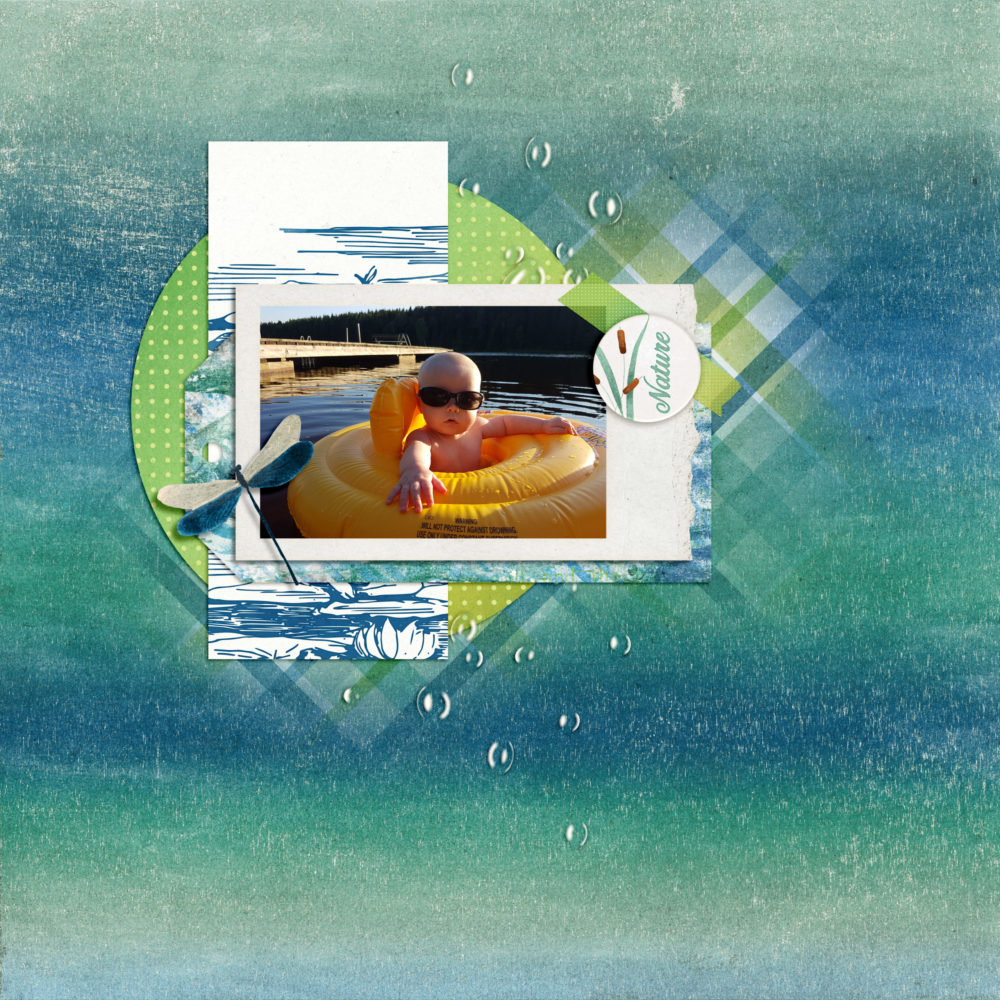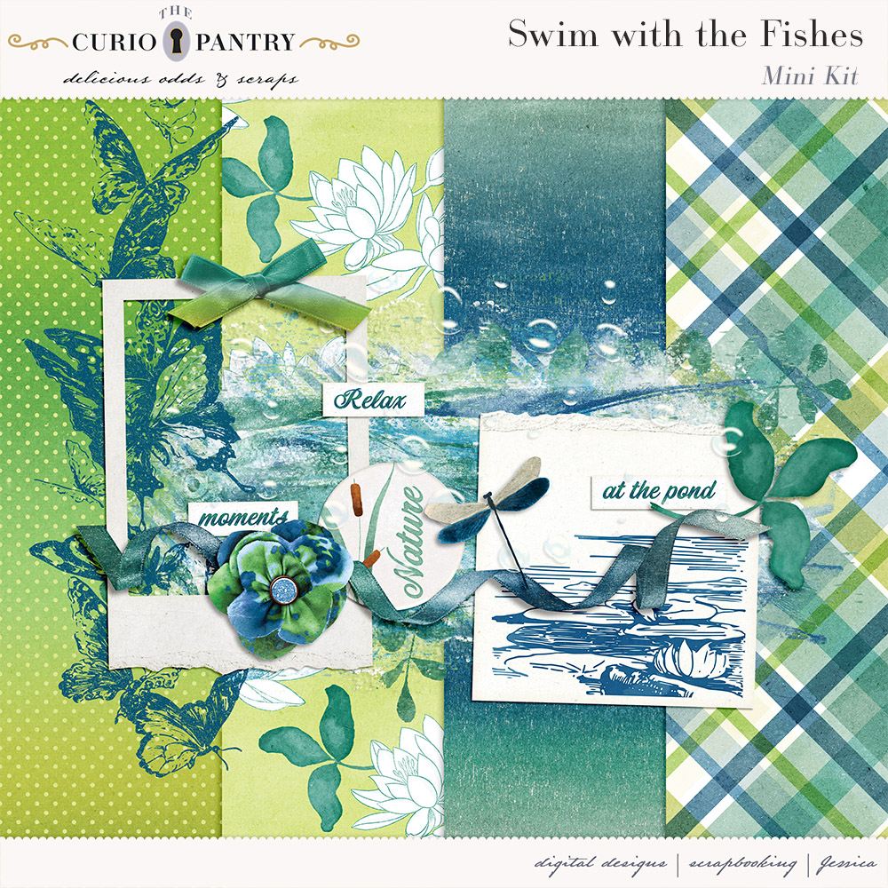 Perfect for Spring and Summer this little mini called Swim with the Fishes features pond life with lily pads & dragonflies. This was originally part of the Digital Scrapbooking Studio’s May FWP and is available currently at Digital Scrapbook.