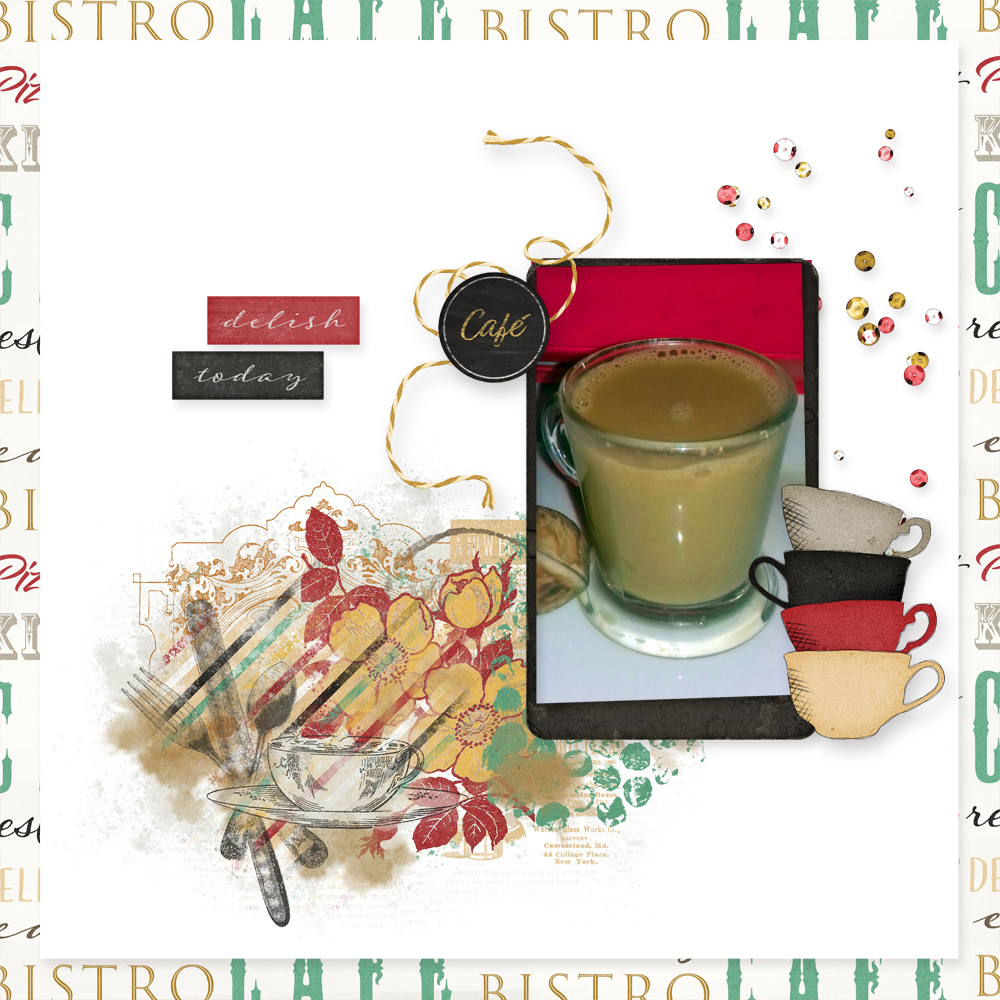 Soup is served. This lovely café style mini kit is perfect for those little luncheons or that latte you grabbed on the go. It was created for Digital Scrapbooking Studio’s FWP Bistro. Tho I am no longer with the Studio, you can still find this mini at available at Digital Scrapbook.