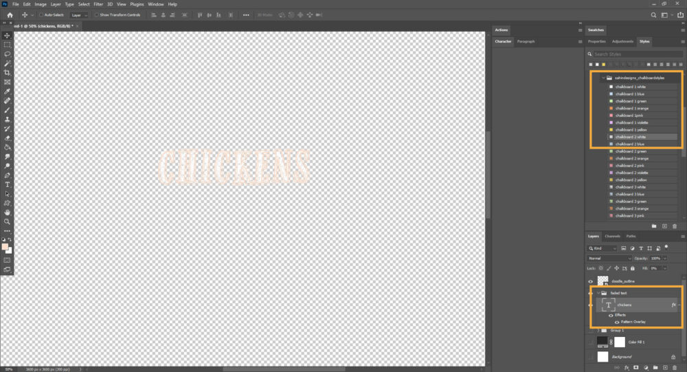 Now go be sure your text layer is selected. Find the Chalkboard Style : chalkboard 2 white and select it. This will apply the chalk style to the text.