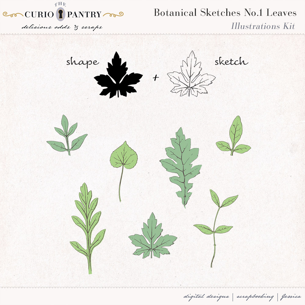 In my Garden Notes bundle I used my Botanical Sketches which are also now available at Digital Scrapbook. They come with both the leave shape and a sketch shape in psd, png & .ai formats.