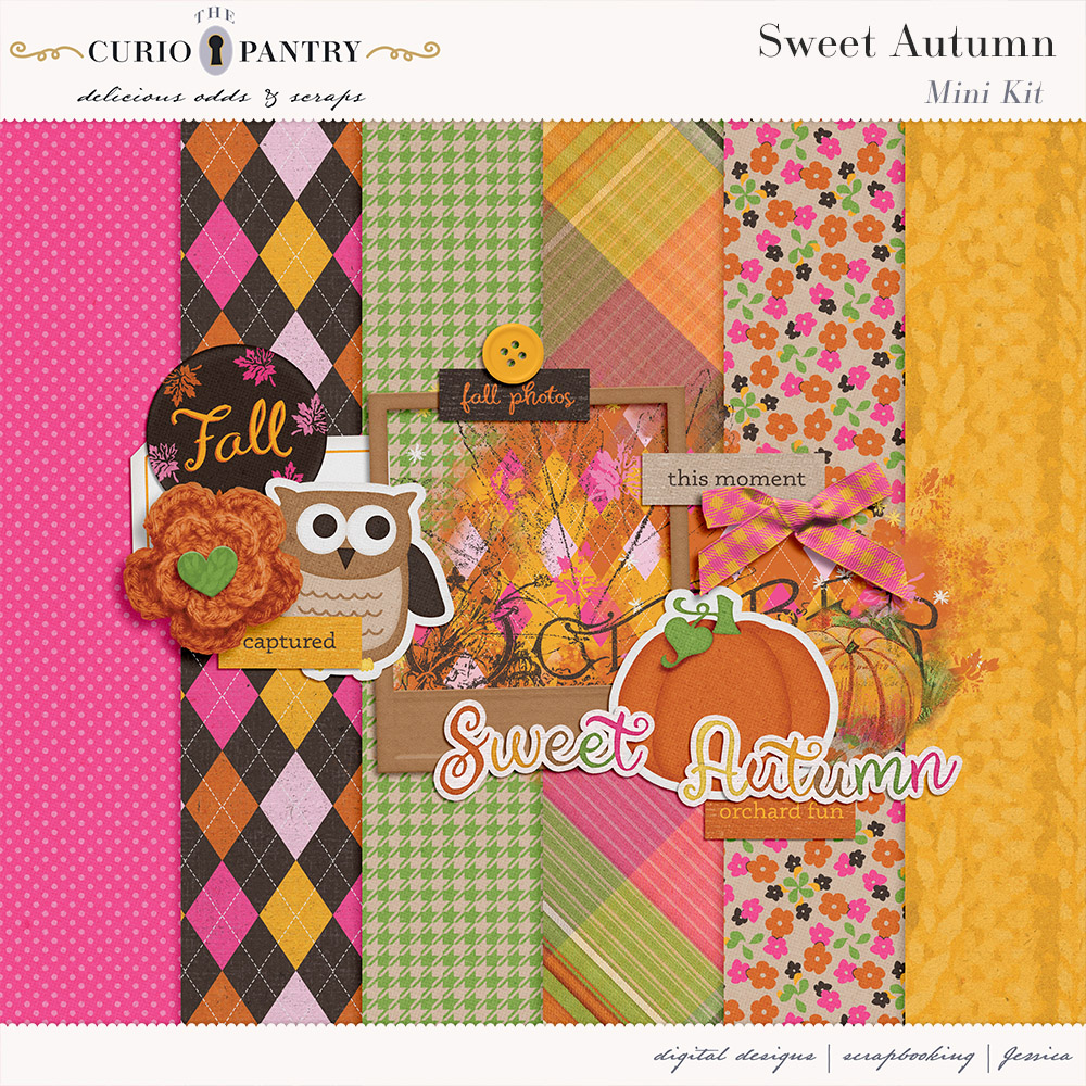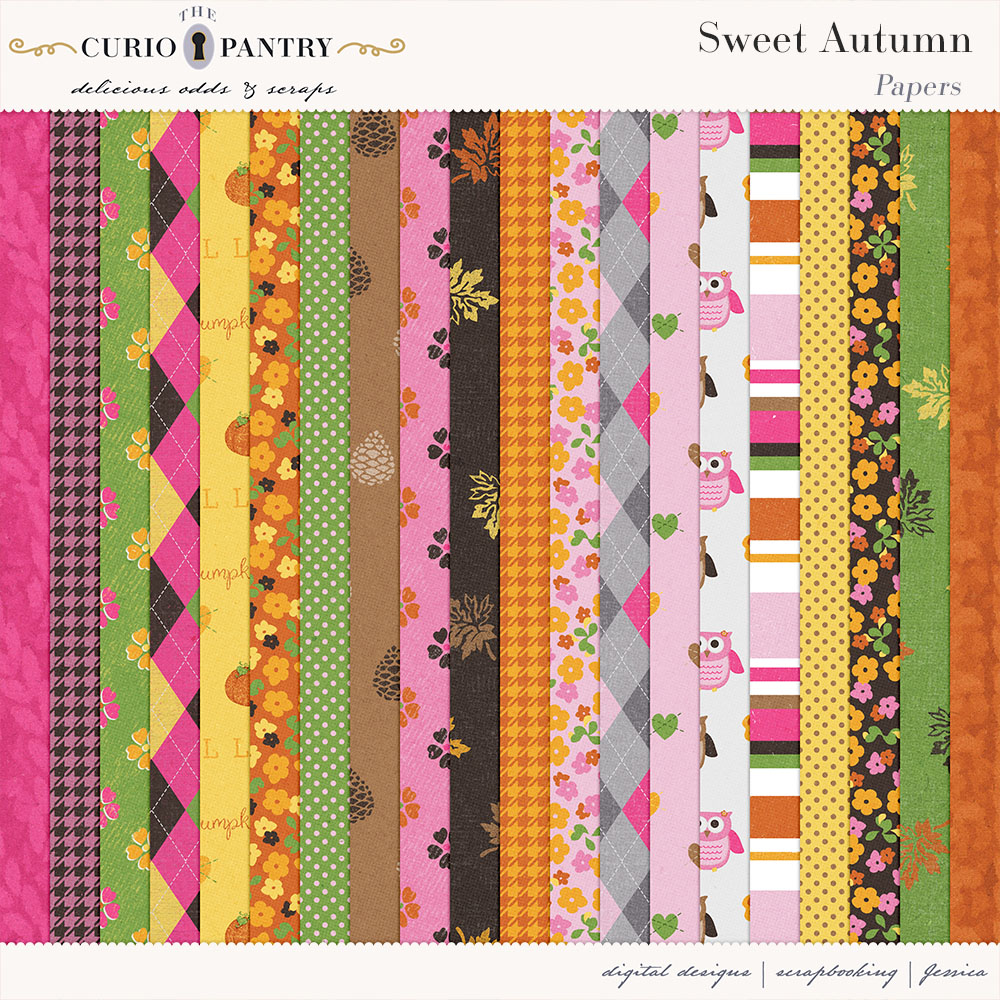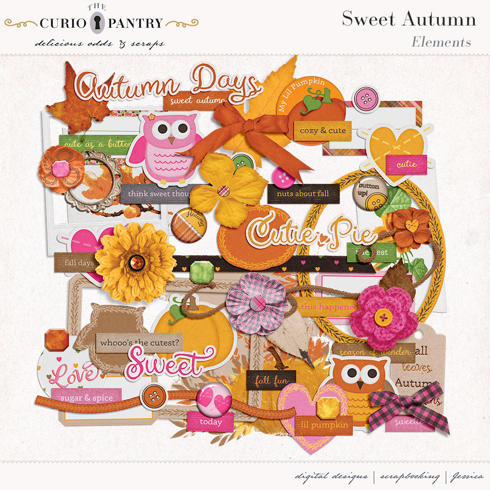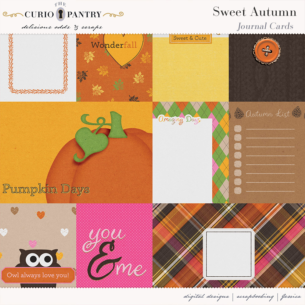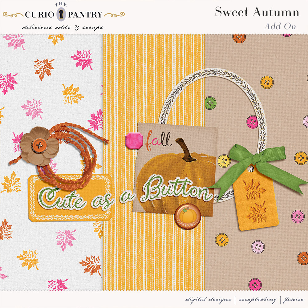I am offering this Add-On mini which coordinates with the Sweet Autumn for free during October. Just sign up for my newsletter if you are not already to get this freebie! Note: If you are a Digital Scrapbook subscriber you can also download them from there.