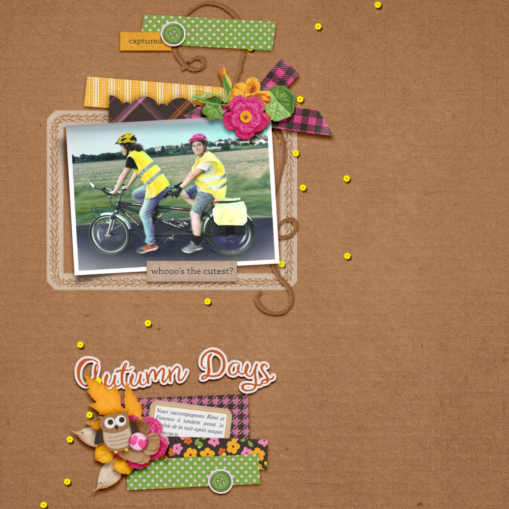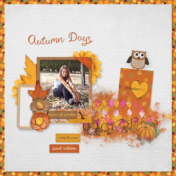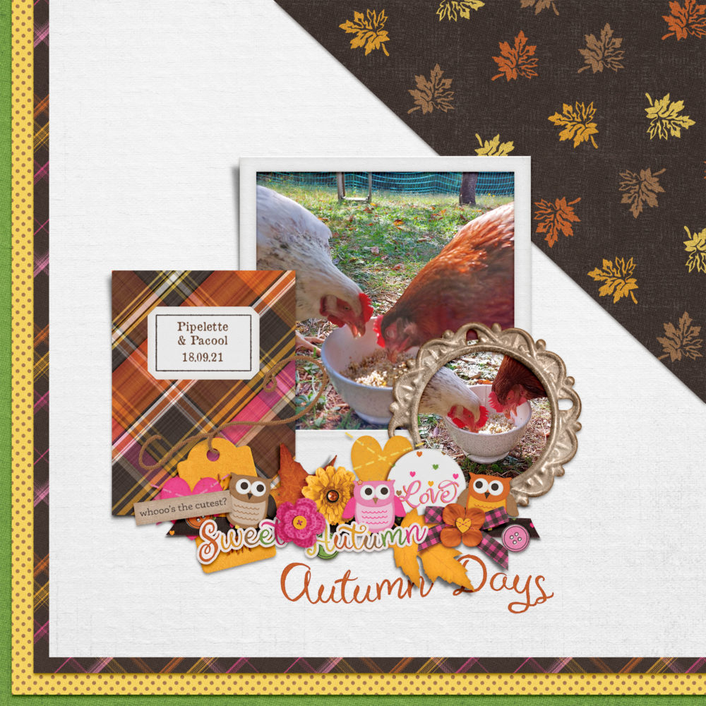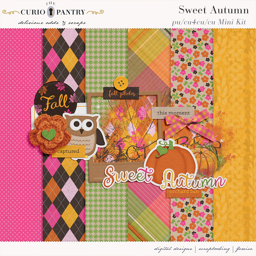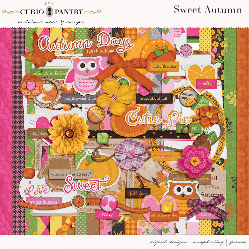 I am offering this Add-On mini which coordinates with the Sweet Autumn for free during October. Just sign up for my newsletter if you are not already to get this freebie! Note: If you are a Digital Scrapbook subscriber you can also download them from there.
