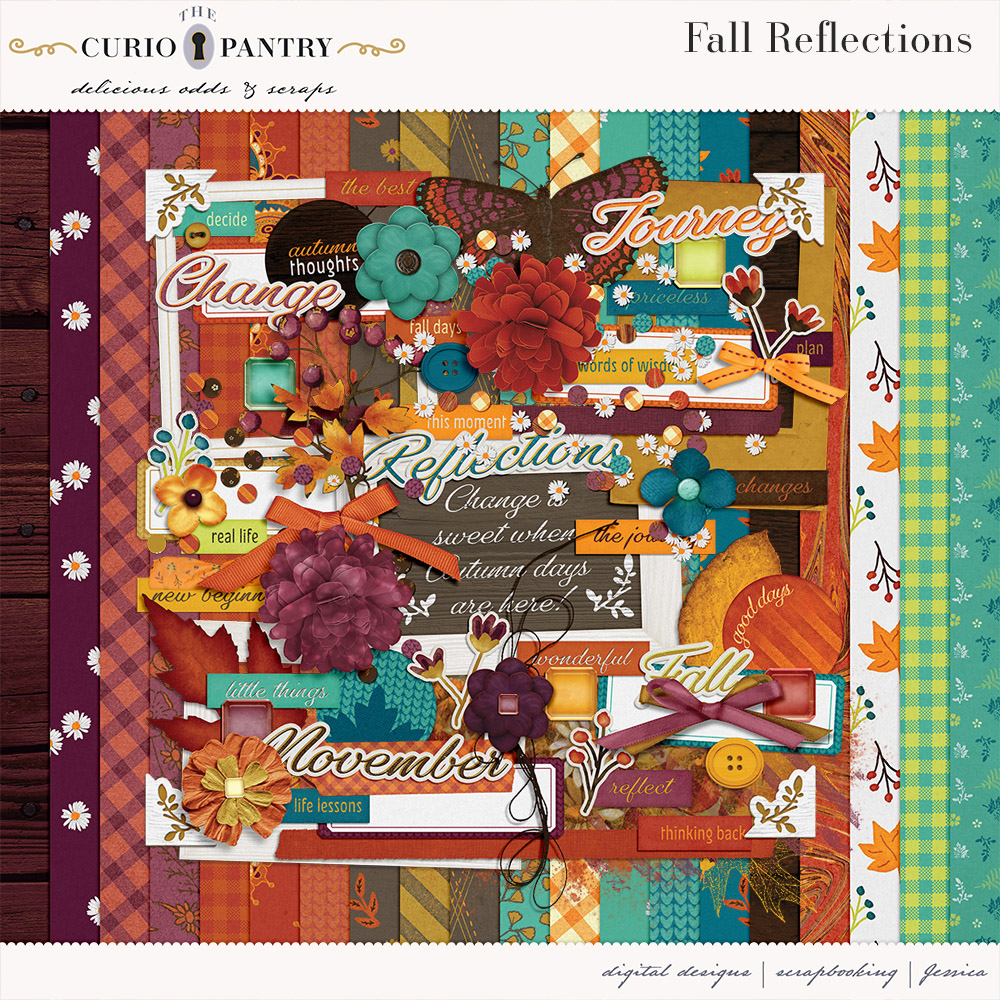 Welcome to November! Today the Digital Scrapbook blog train is up and running and that means a lot of gorgeous goodies are waiting for you! I have a mini called Fall Reflections and be sure to scroll down because the lovely ladies on my team, AMarie & Valentina, made some beautiful gifts for you too!
