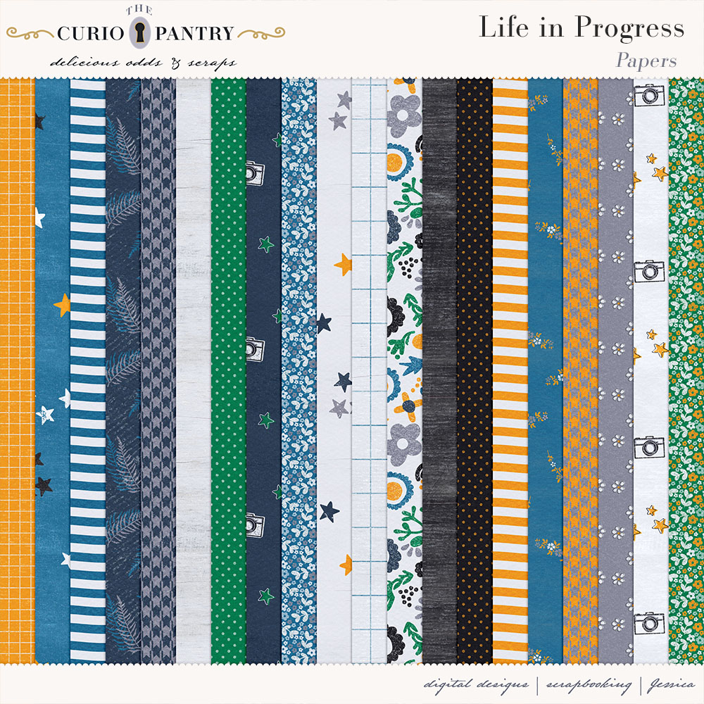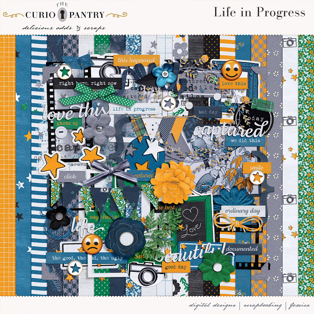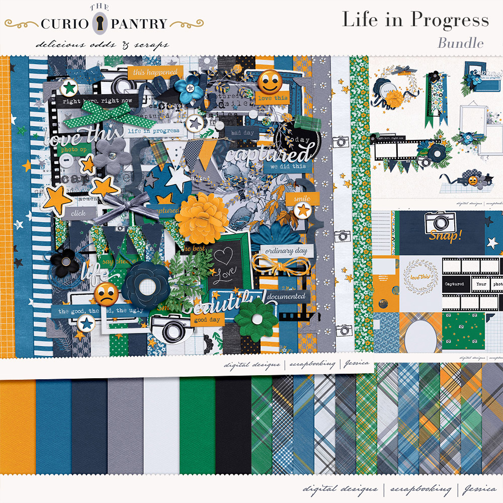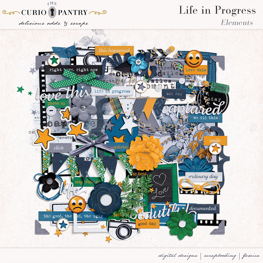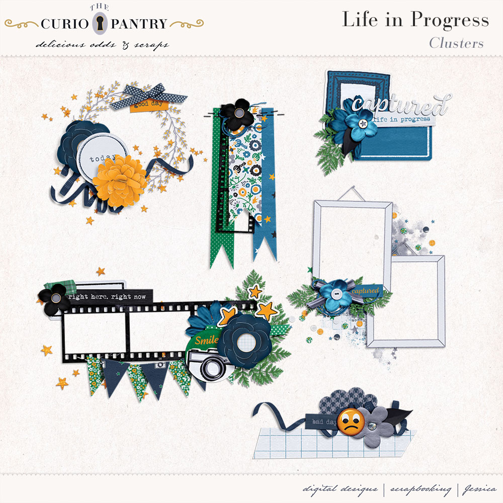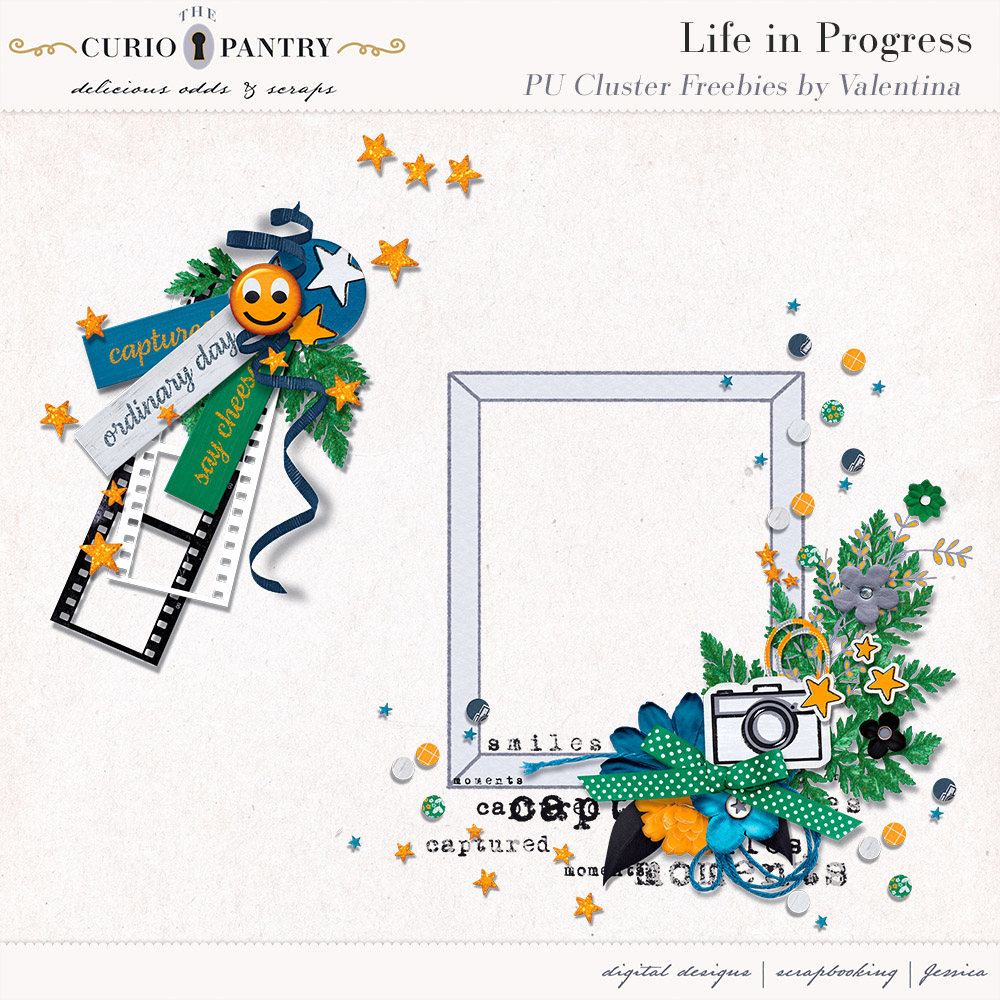 Today I have a new bundle at Digital Scrapbook – Life in Progress. The focus on this kit is just *life*. Maybe it’s was a good day or a bad one or just a memory caught & stored away – they all can be documented! This bundle with some fun hand made illustrations should help to give you some fun things to work with for your projects! And be sure to check out the gorgeous freebie clusters AMarie & Valentina made for you using this new bundle!