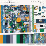 The baking days bundle coordinates with this month’s train. This bundle is a perfect compliment to your baking fun! This is a large bundle besides the page kit there is an alpha in 7 colors, flairs, stickers, pocket cards, plaids, solids, and extra papers.