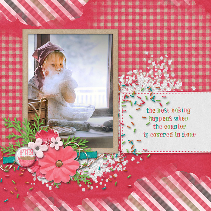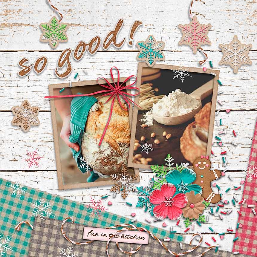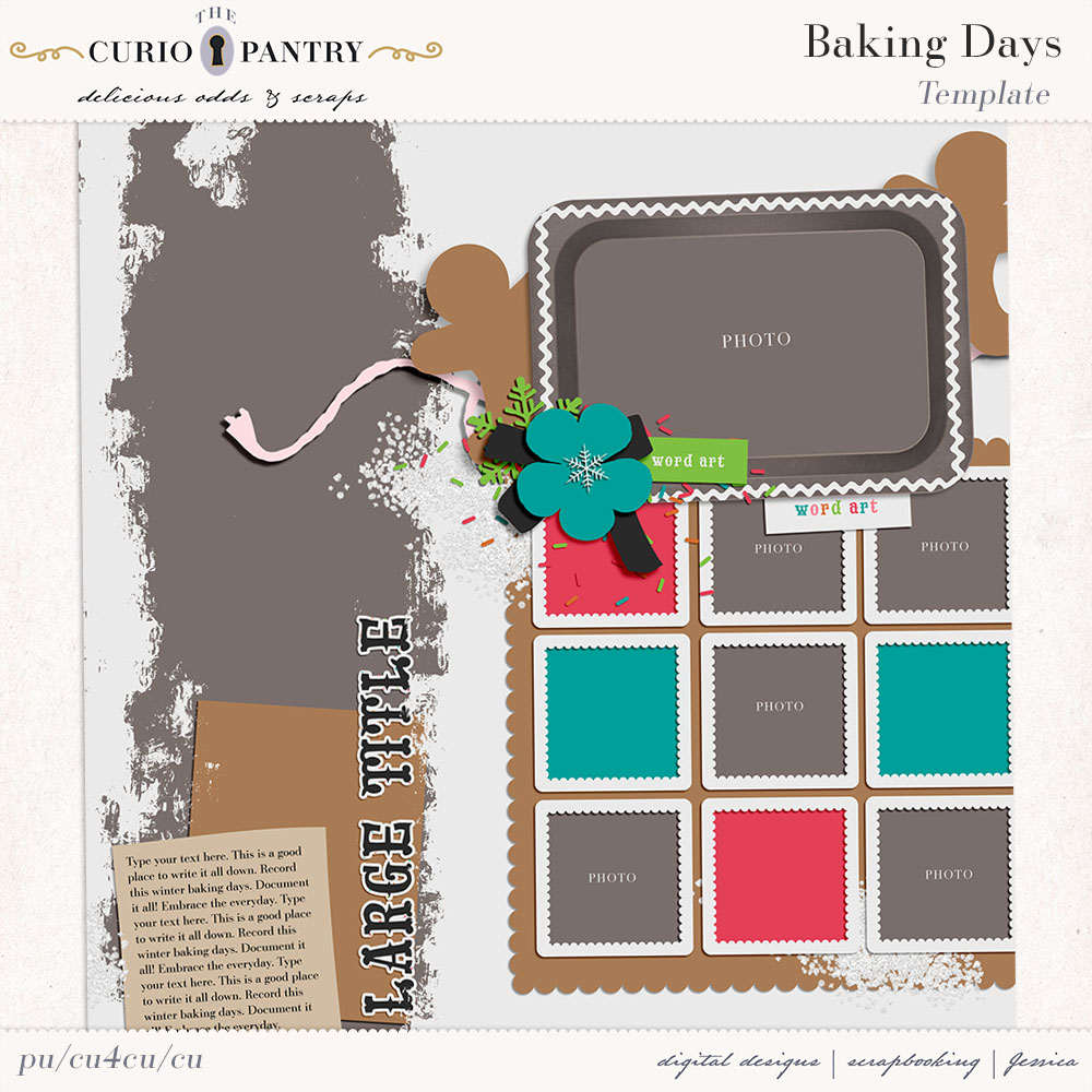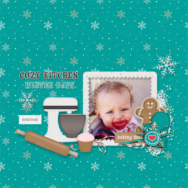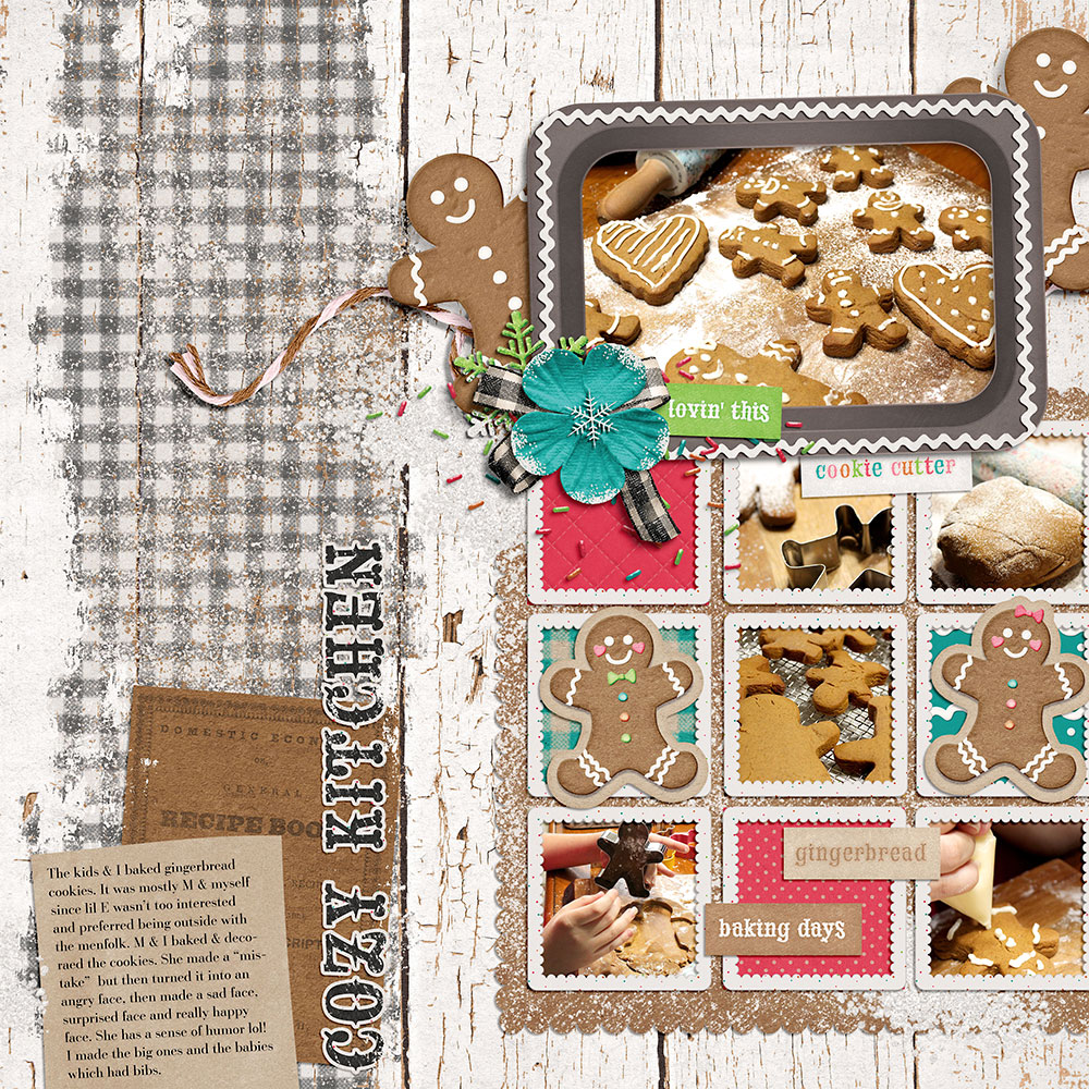Today is December 1st which means the Digital Scrapbook blog train has rolled out! Speaking of rolling the theme I chose for this month was winter baking! I love to heat up the oven and bake on those cold and/or snowy days. Gingerbread people and snowflakes just make it all the more fun! Please enjoy the mini and a template freebie I was able to create for you! I hope you find them useful!