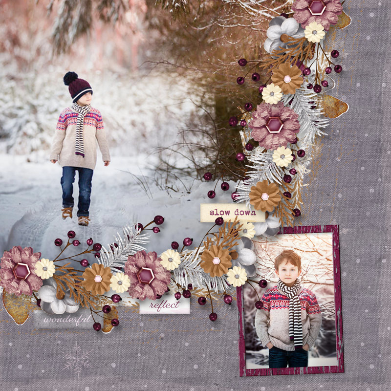 Here are some amazing and creative pages the Team has put together using Winter’s Repose. I hope you become as inspired as I was with them!