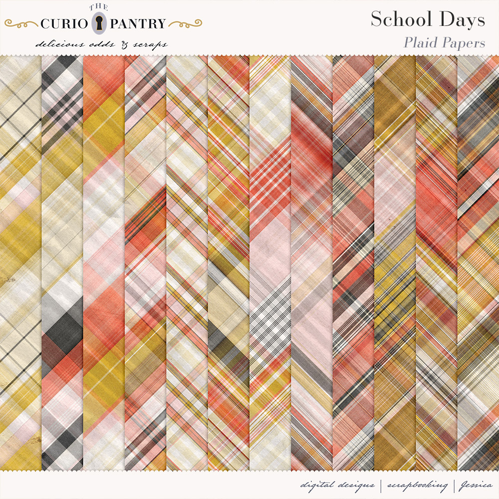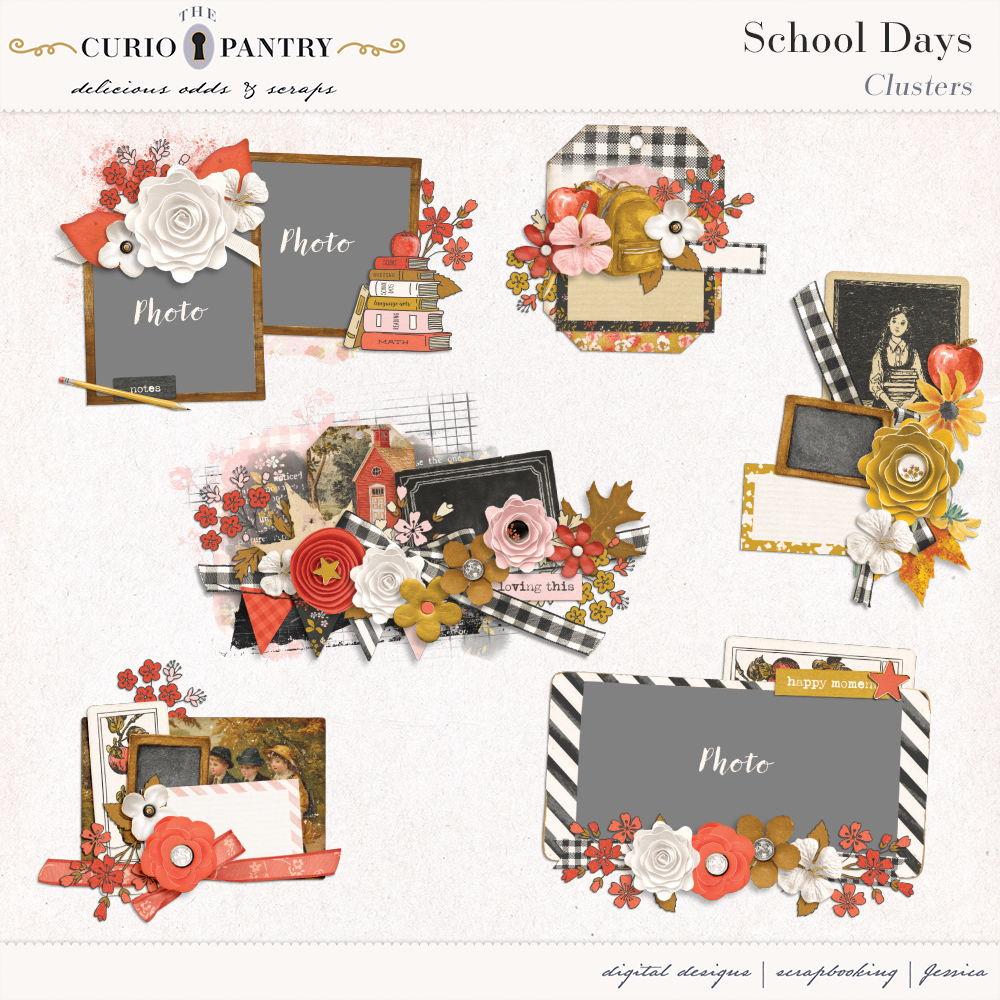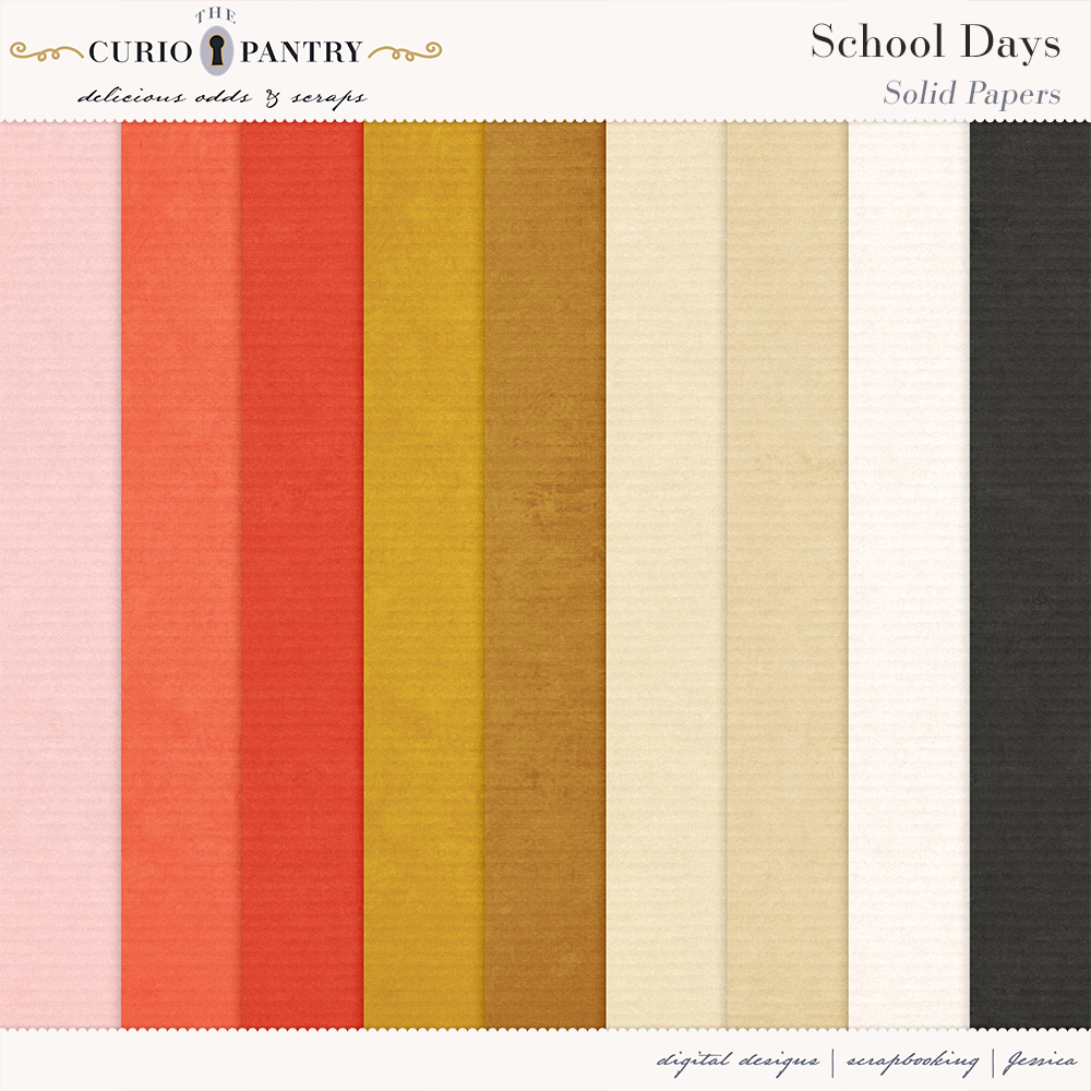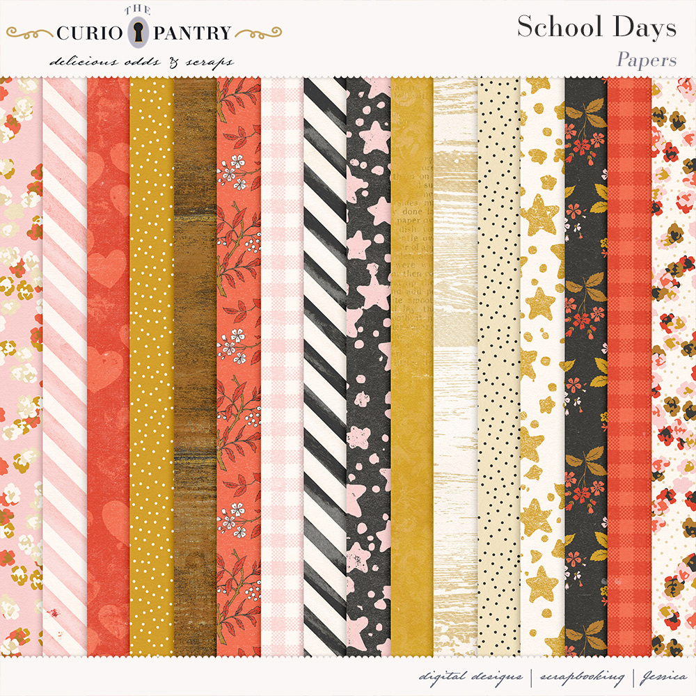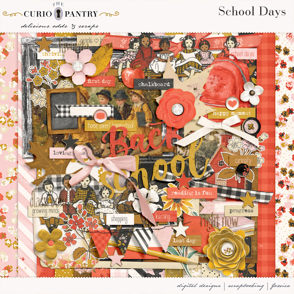 August and September are the typical months of children heading back to the classroom. This School Days bundle has a wide range of elements, word art, journal cards, stamps, and papers to help you document your own school days or those younger ones in our lives. It’s nostalgic feel is perfect for documenting the past or present!