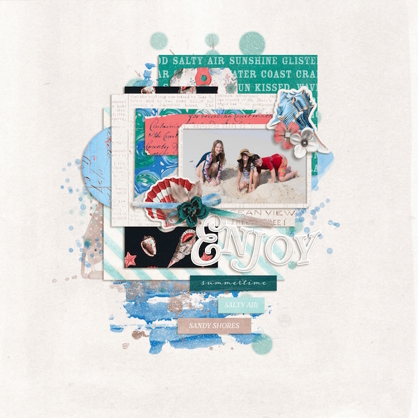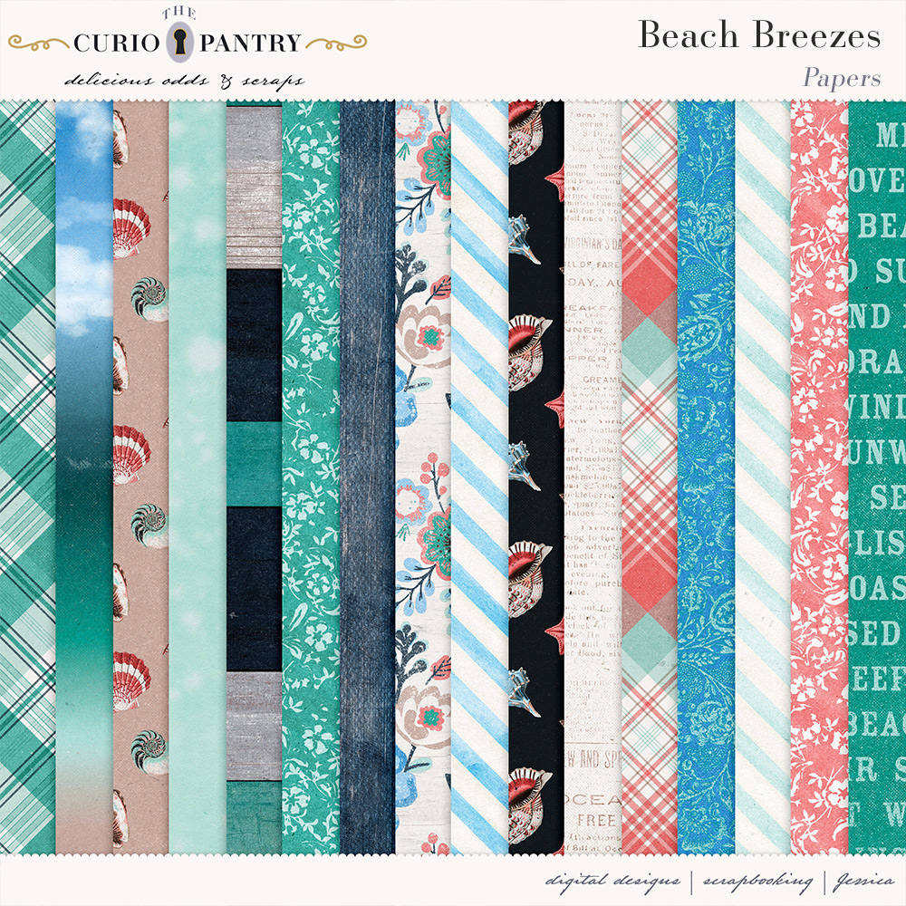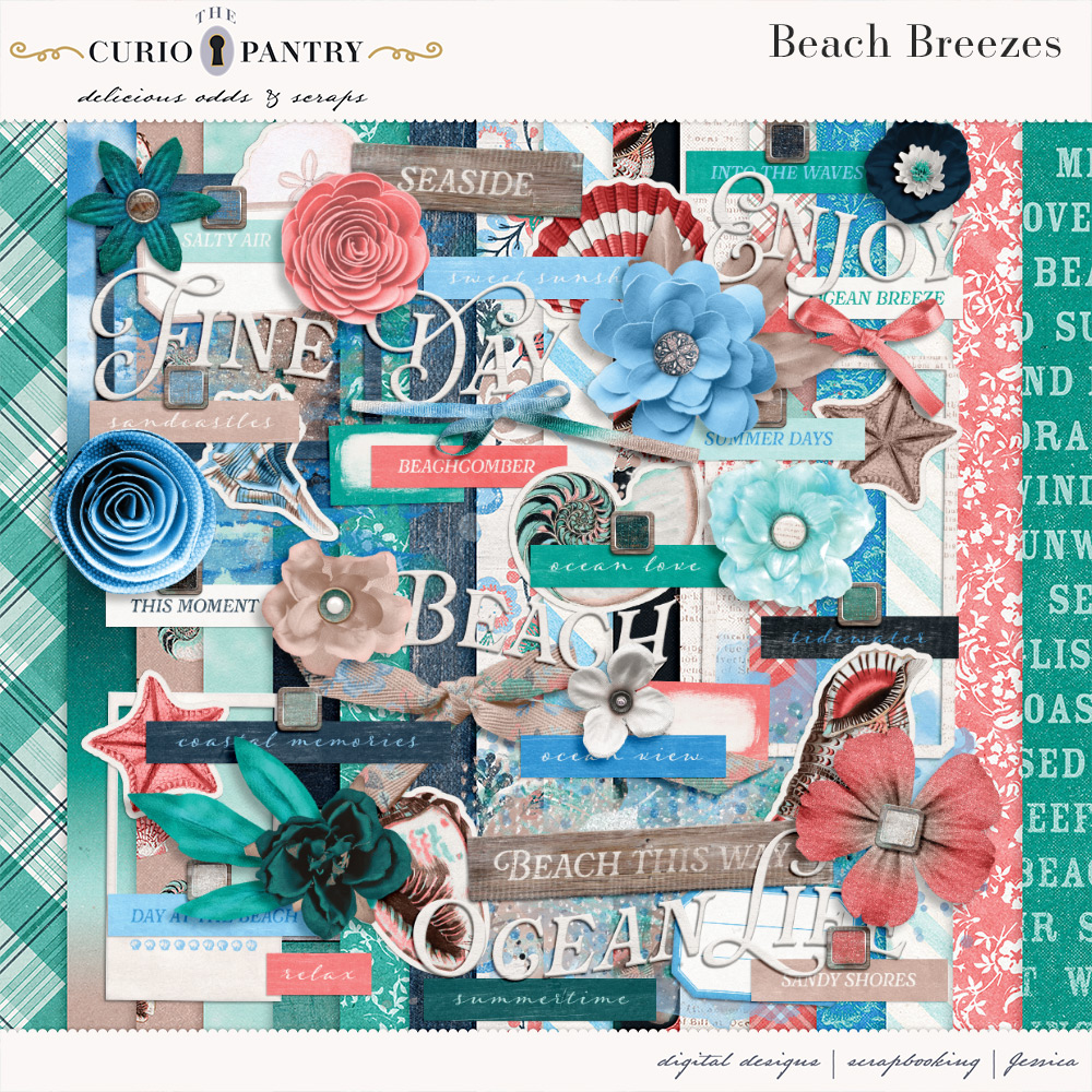 The ocean air is salty and those beach breezes are perfect to enjoy on a summer day. Whether you are taking a walk along the sandy shores, building sandcastles, or riding the waves, coastal memories tend to live on strong in our memories. The Beach Breezes bundle is a perfect compliment for your seaside pages & projects.