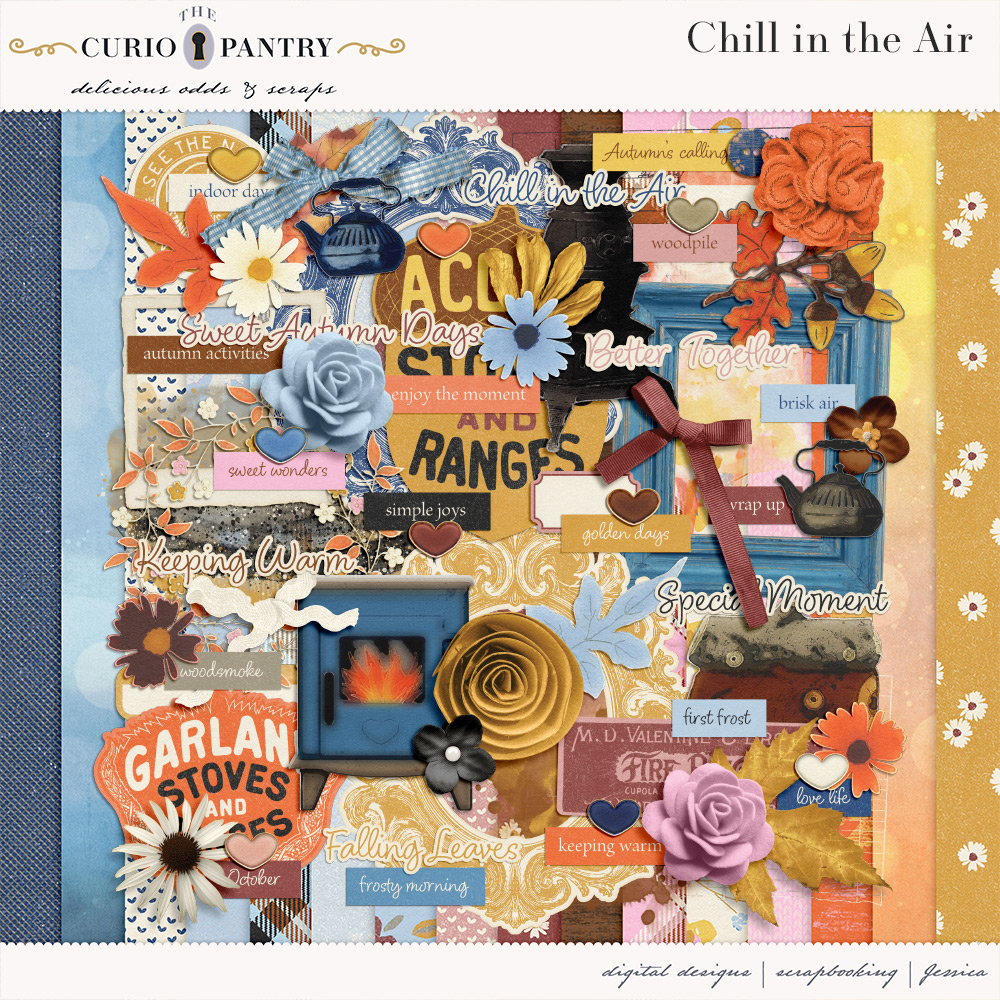 There is a Chill in the Air with Autumn’s calling. The leaves are falling, the mornings are frosty, and the scent of woodsmoke fills the air. Thoughts turn toward staying warm and cozy. In the beginning of the season it is abuzz with so many Autumn activities before winding down to a gentle pace. This bundle can be wonderful in helping you to document all those special and everyday moments.