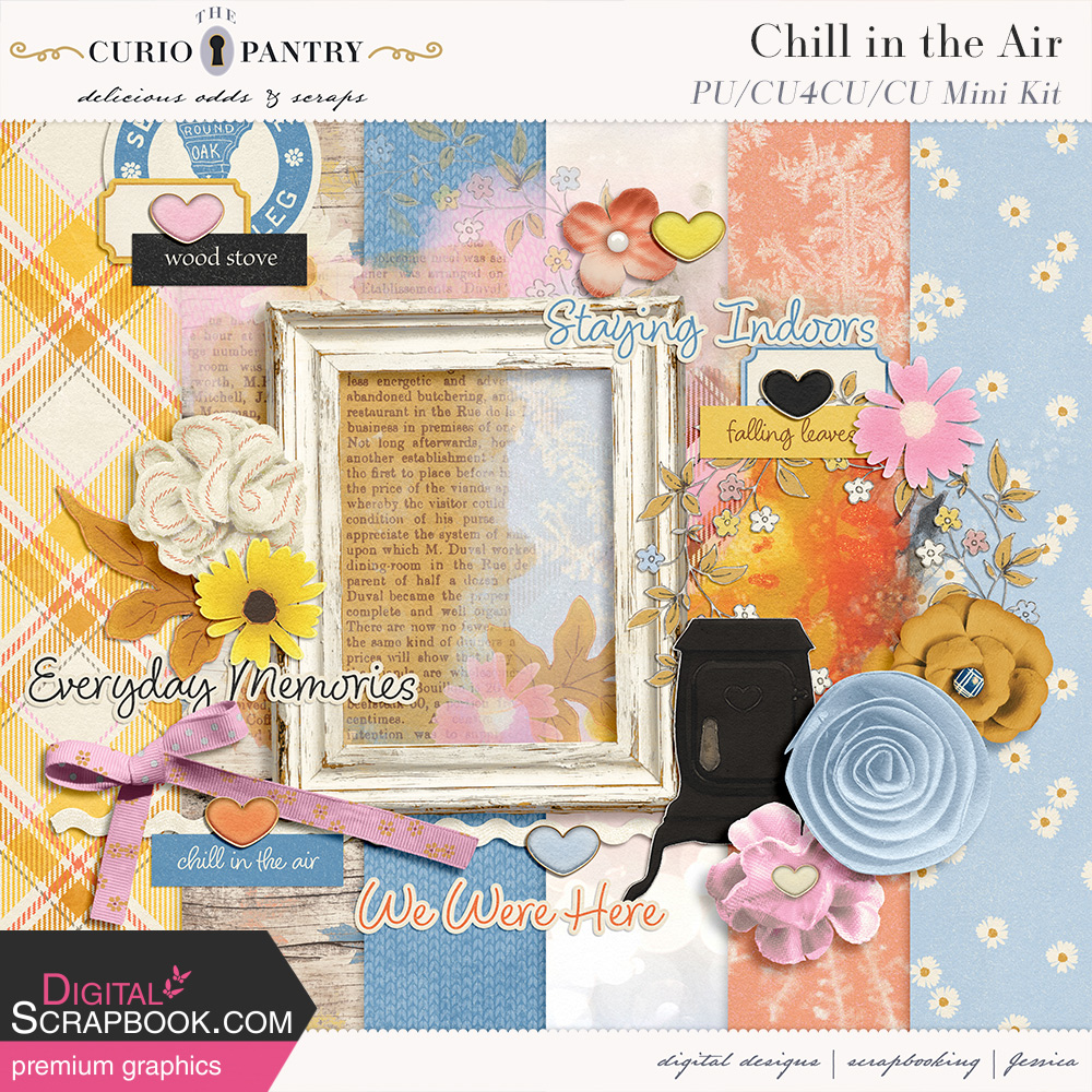 How appropriate the weather knew exactly when my new bundle was coming out as we dip into the 40’s tonight for the first time since Autumn arrived. There certainly is a Chill in the Air! There is also a coordinating mini freebie kit for you too!