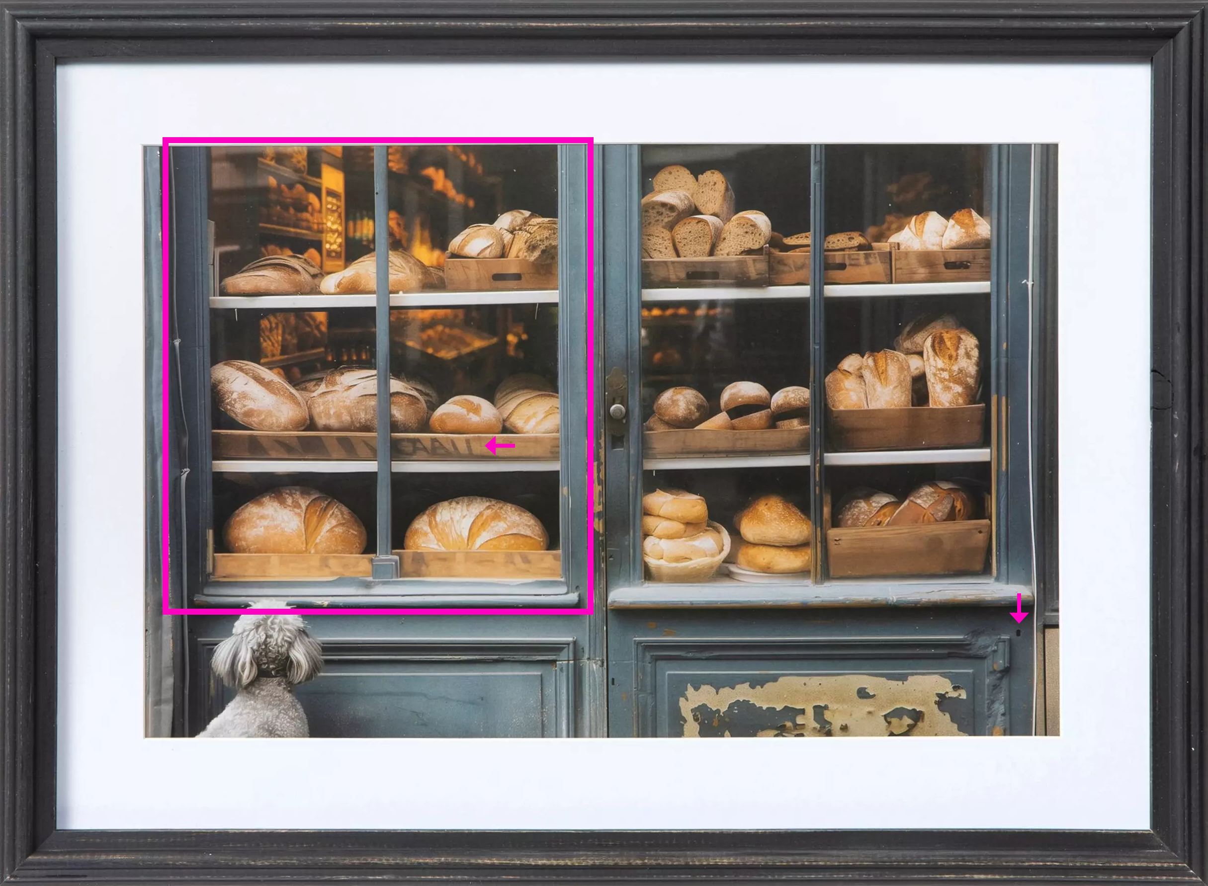So I asked myself, are these supposed to be doors or windows?? The left window/door is built differently than the one on the right – there’s that lack of symmetry. Then there are also strange keylike holes in places that do not make sense. There is also AI text which I spotted on the wooden trays holding the bread. Even the moulding in the center of the left window/door starts out flat at the top but turns into a pattern at the bottom. I have lived in a few old houses myself and I am quite used to seeing the progression of time related changes, but there are so many strange anomalies that don’t make much sense with that context.