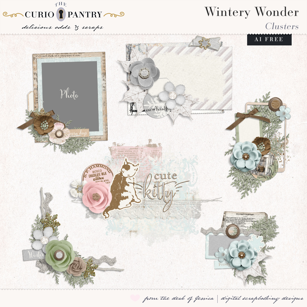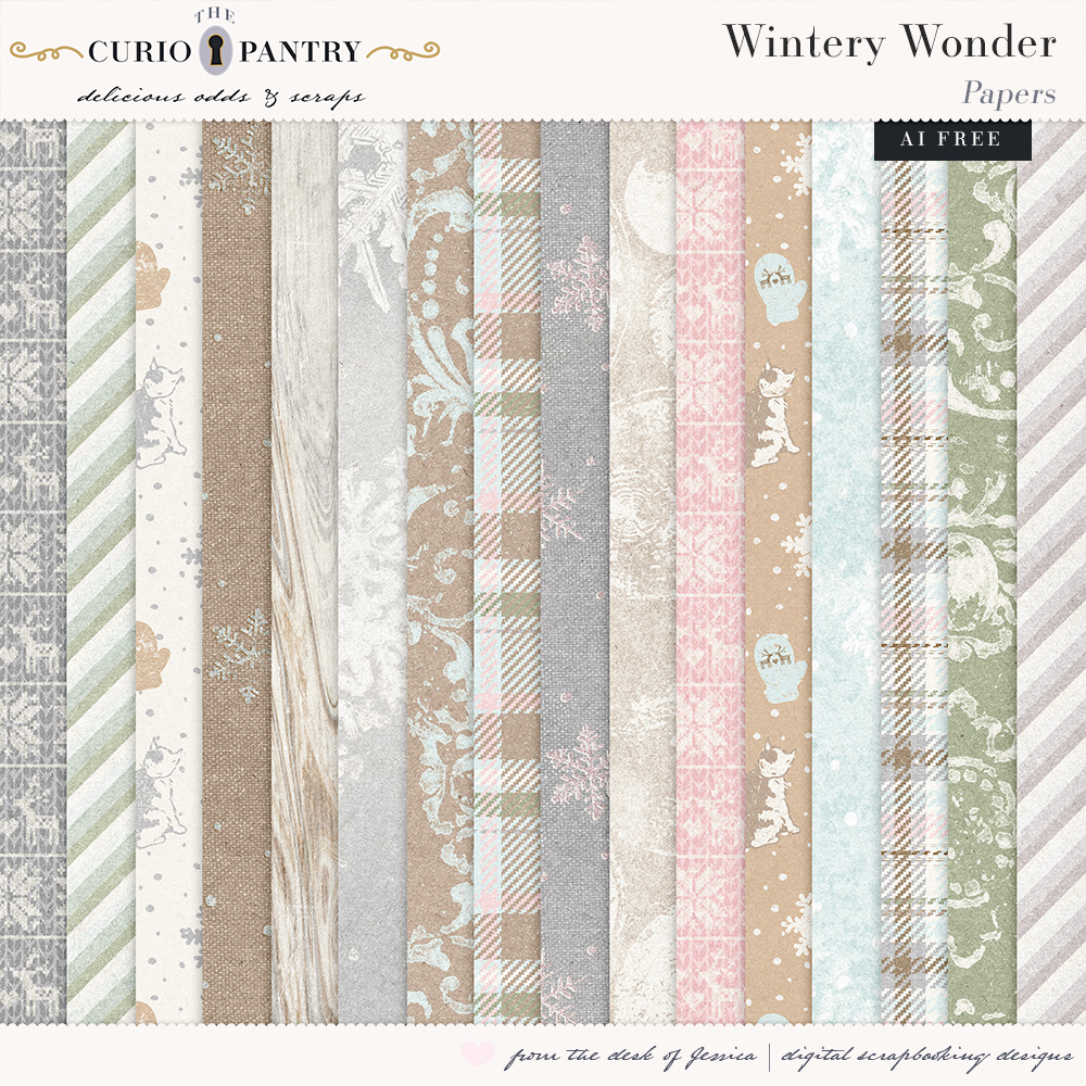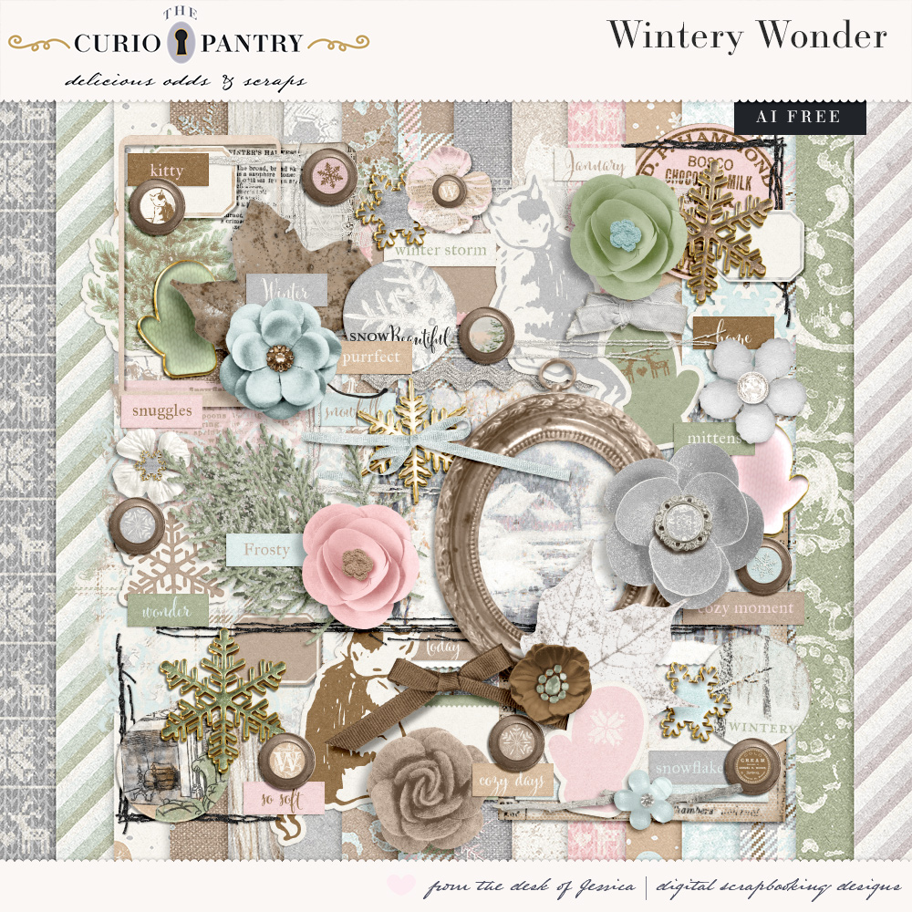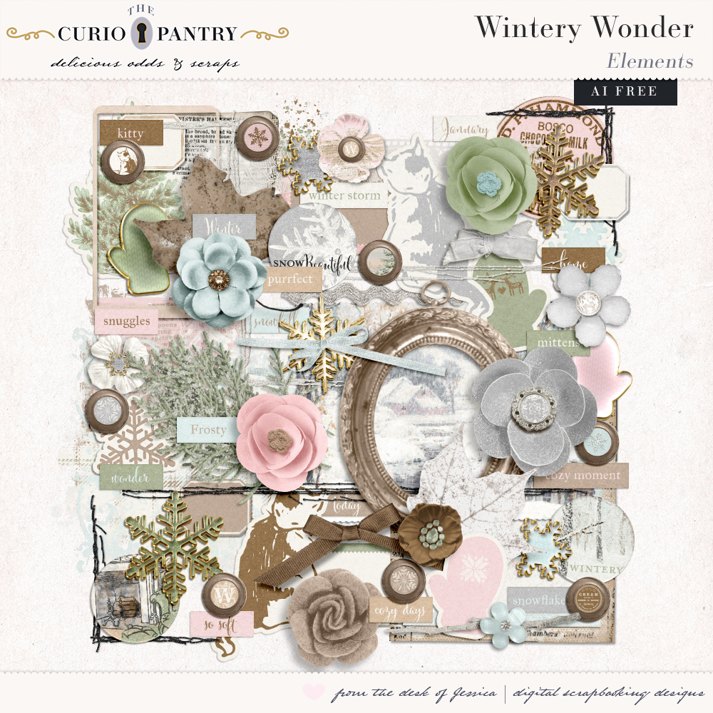 Today, I have a new bundle released at Digital Scrapbook called Wintery Wonder, that can really add a special touch of Winter to your projects and pages.