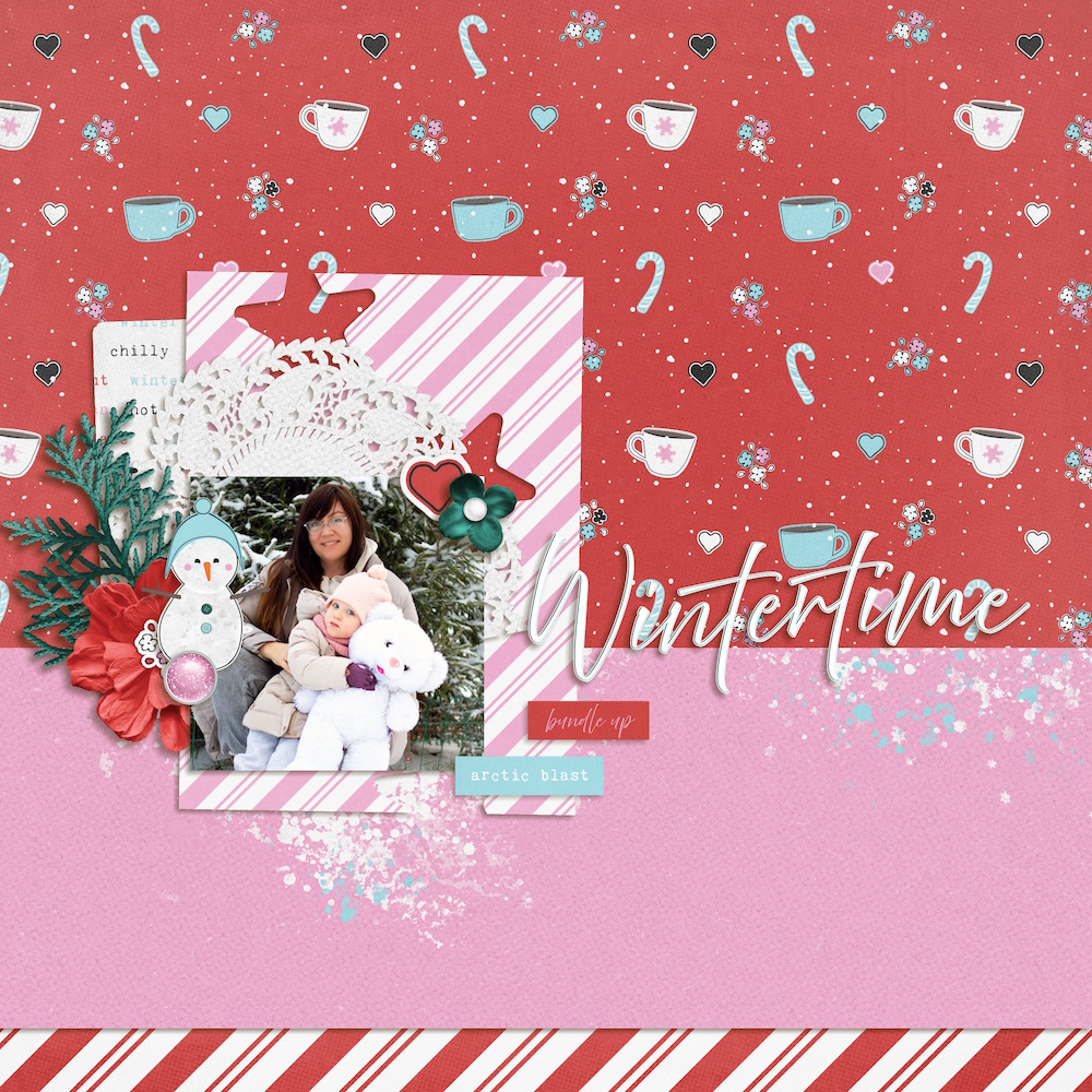 Here are several amazing pages that were created by my Team using the Peppermint bundle! I love how they are the laid back and have packed a lot of winter fun in them!