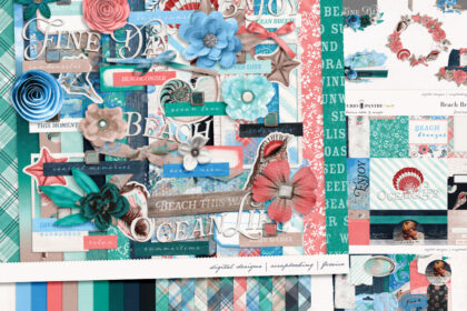 The ocean air is salty and those beach breezes are perfect to enjoy on a summer day. Whether you are taking a walk along the sandy shores, building sandcastles, or riding the waves, coastal memories tend to live on strong in our memories. The Beach Breezes bundle is a perfect compliment for your seaside pages & projects.